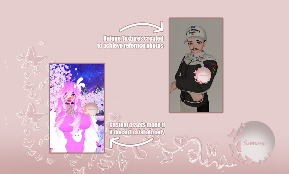 My starting range for an avatar commission starts at $100, then more depending on some factors. For example, if you describe the kind of avatar you are looking for and we need to buy a new hairstyle or clothing because I don't own it, we raise the price to include that piece. It will also cost more depending on how many toggles you want. If you have an avatar with no toggles vs breast size, butt size, hairstyle change, clothing change, color changes, etc it will make a big difference in price. Orders have been around $250 on average but could be anywhere from $160 to $500.