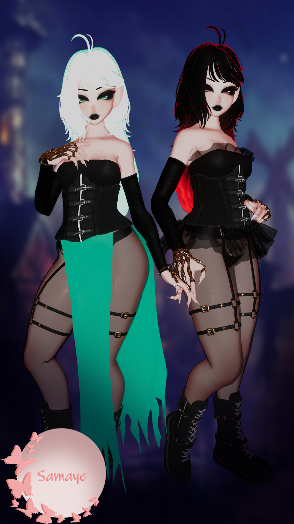 (Base) Pandaabear (Ruffles) Rommi#0307, (Corset) Yes Please Ty, (Head) xSnail#2902, (Fishnet Undies) Bias#0001, (Torn Skirt) nini#0517, (Skeleton Hands) Kittyz#6666, (Wolfcut) Saikura, (Garter) Abnormal#0001, (Boots) Kiri#3633, (Tights) Milky Mommy#6969