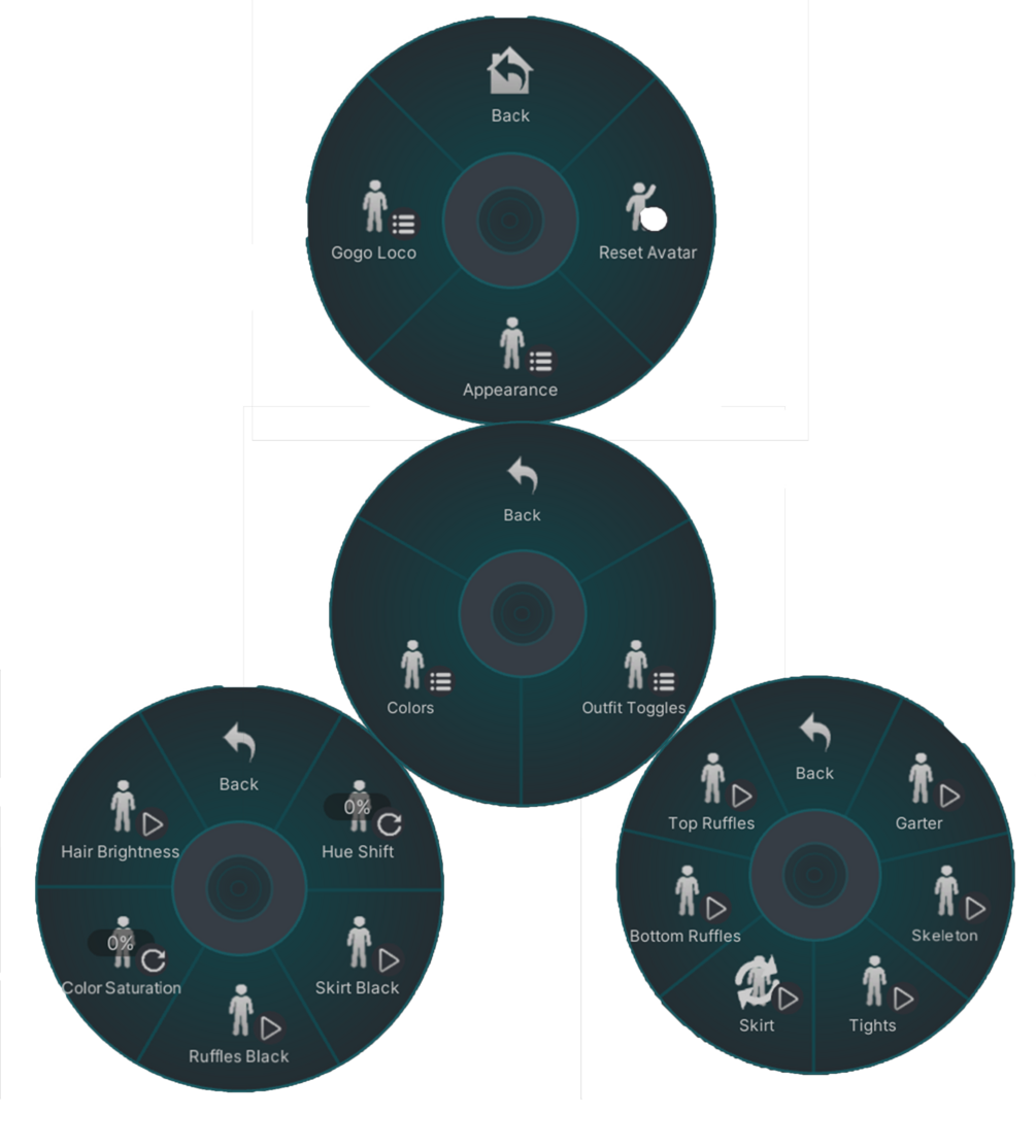 - Hair Brightness Slider, Overall Saturation and Hue Sliders, Make the skirt and ruffles toggle black