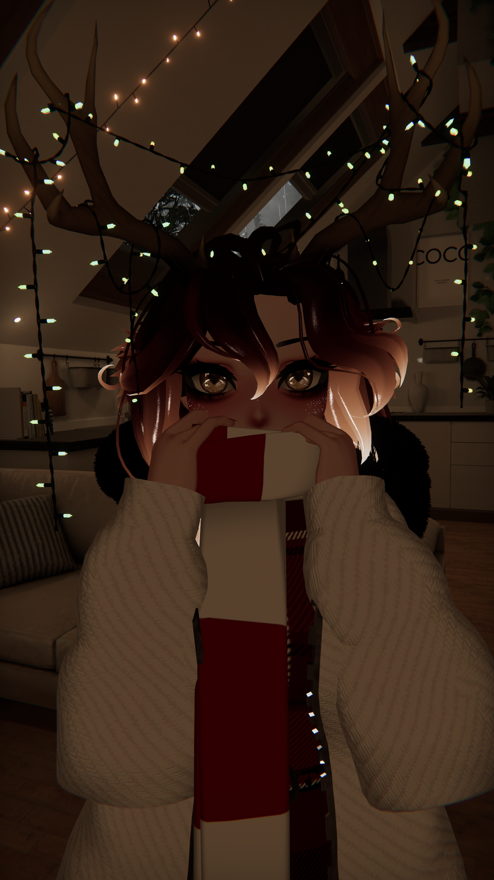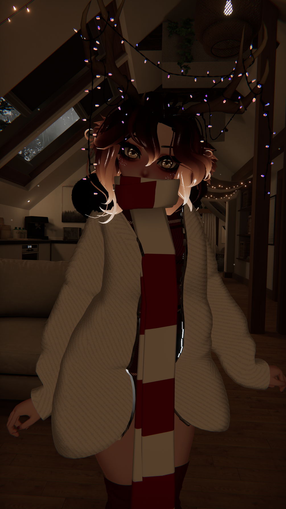 (Base) Pandaabear (Head) Mia#5107 and ничто#6666, (Eyes) WetCat#6969, (Ears) WetCat#6969, (Body Texture) Uni#1369, (Panties) brae#2007, (Socks) AQ#0999, (Dress) rinebean#1111, (Coat) rinebean#1111, (Shoes) frog#3079, (Reindeer Horns) YamuVR, (Nail Cuts) Yang#6669, (Hair) bunisu, (Scarf) FlyinChickin
